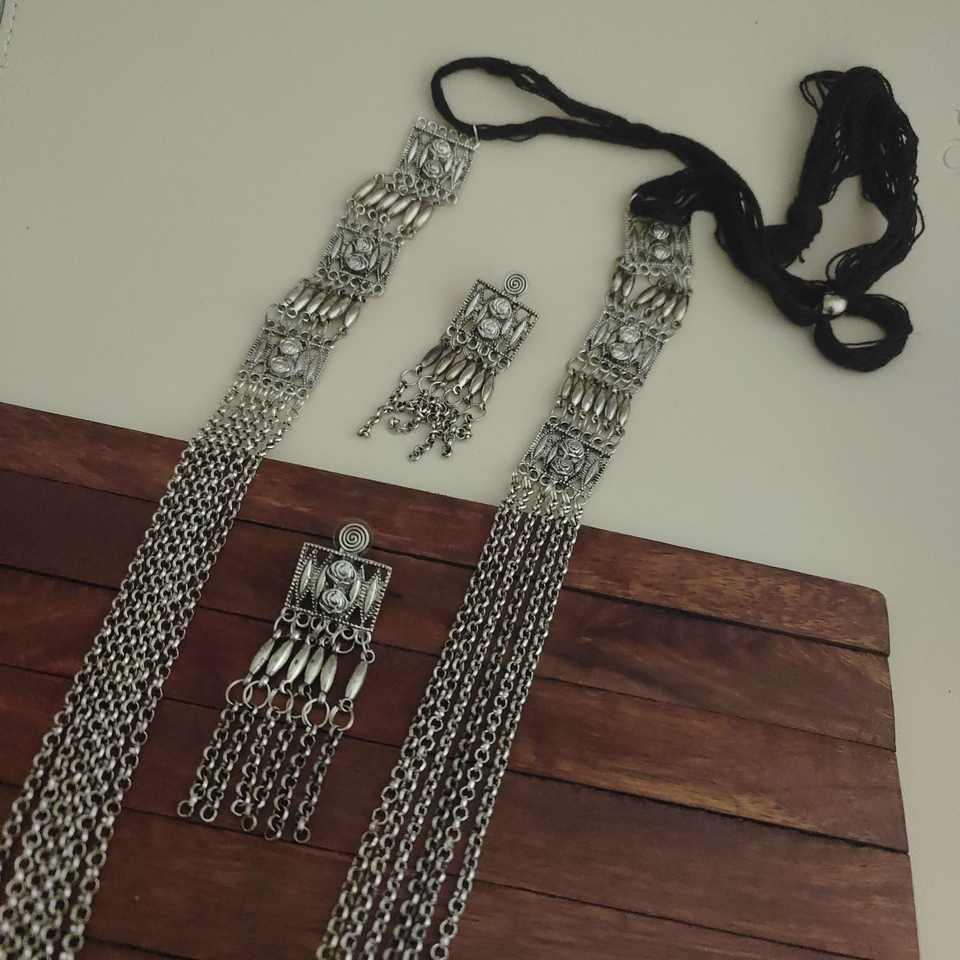 Product Name:LAYA Oxidised Long Multi Layer Necklace Earrings Set