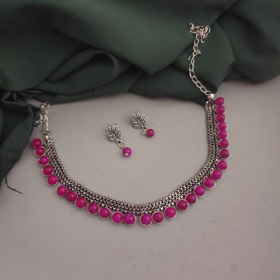 Product Name:Oxidised Beads Choker Necklace Earrings Set-2