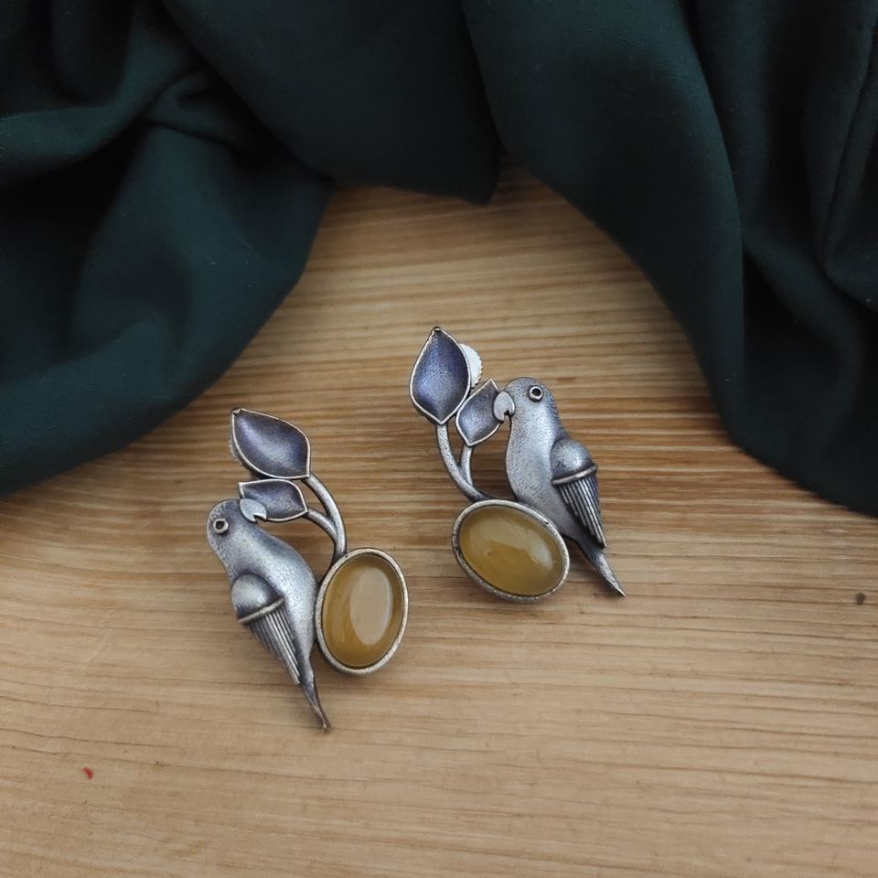Direct Indian Supplier's Best Selling High Quality NYRA Parrot Silver Stud Earrings Geometric Pattern Design High Grade Fashion