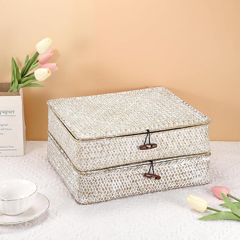 Direct pricing eco-friendly seagrass organizer sea grass box weave straw boxes for toys dresser storage