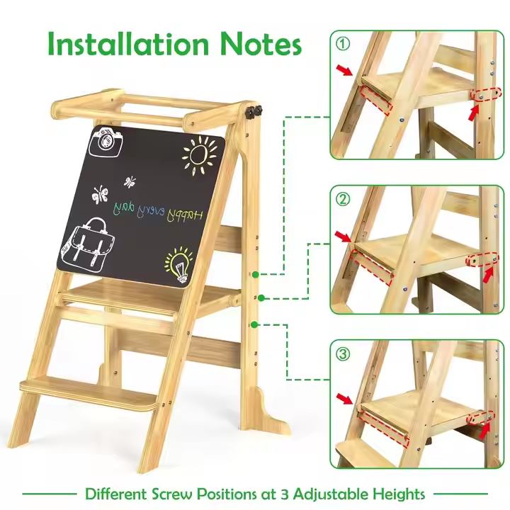 Directly Supplied by Manufacturers Solid Wood Two-in-One Children's Learning Chair with Foldable Table and Blackboard Ladder