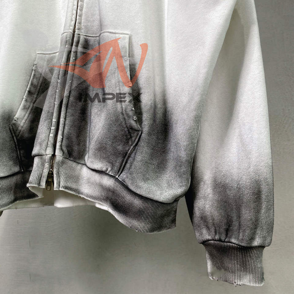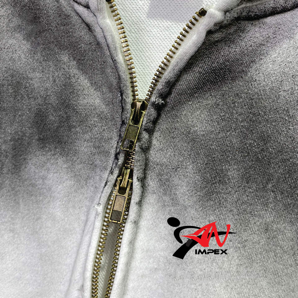 Dirty Wash Distressed Men's Zip up Hoodie Oversize Double Zipper Pull Acid Wash Hoodies Unisex