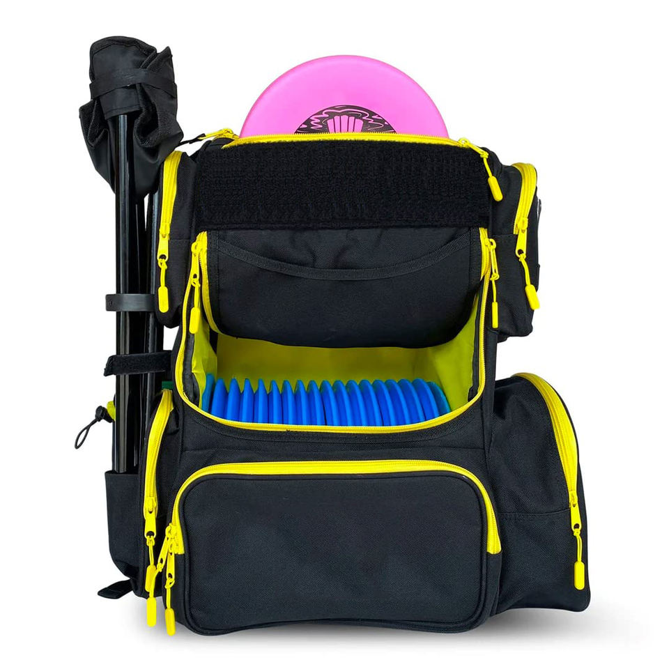 Disc Golf Bag With Cooler Large Insulated Built-in Cooler with 24-Can Golf Backpack Light Durable Black Disc Golf Bag