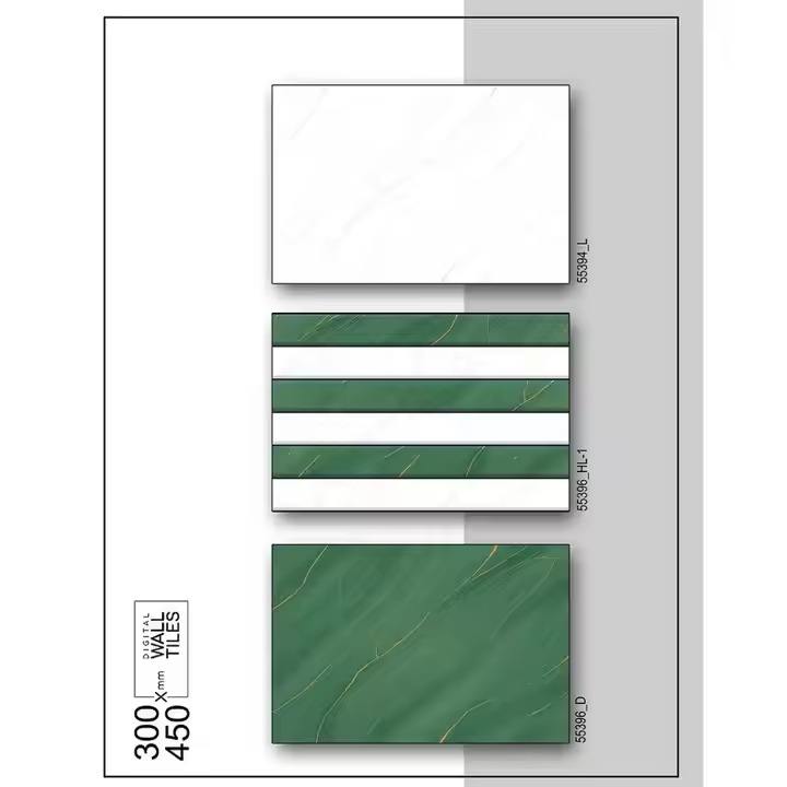 Discontinued 300x450mm Green Designer Interior Wall Ceramic Tiles Greens and White 12x18 Highlighter Tile Factory Clearance