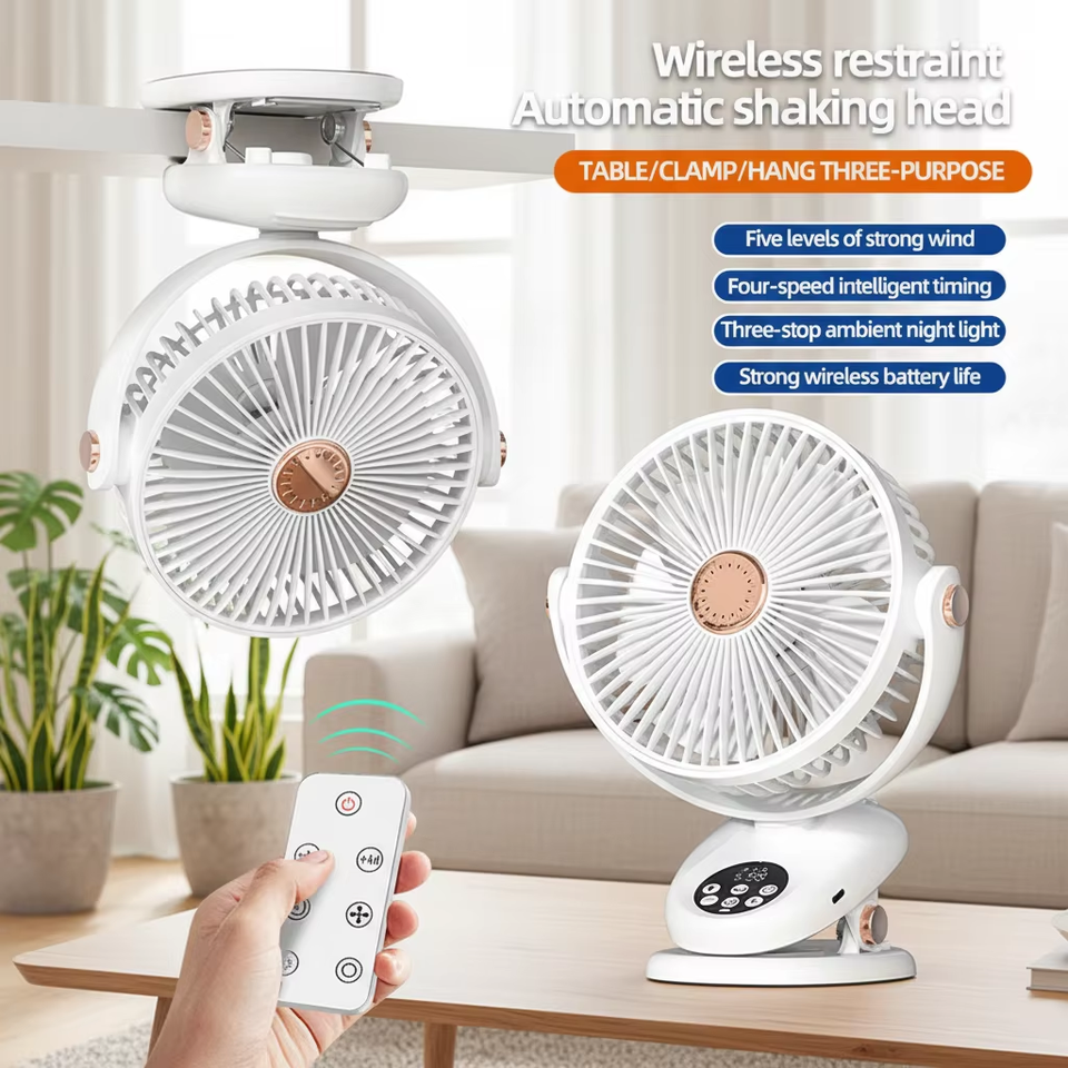 Desktop/Clip/Wall Mounted, Shake head/rotate, LED gear power display