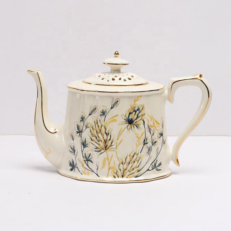 Discount European Style Wheat Ear Pattern Tea Cup and Saucer with Gold Border