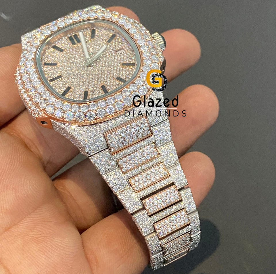 Discover Unique Craftsmanship in Our Mens Stainless Steel Hip Hop Watch Crafted High Quality Moissanite Diamond With VVS Clarity