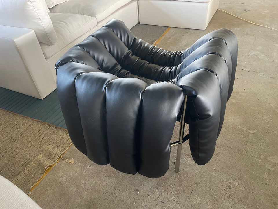 Disen Furniture Contemporary Patio Woven Fabric Leather Black Leather Stainless Steel Frame Single Sofa Chaise