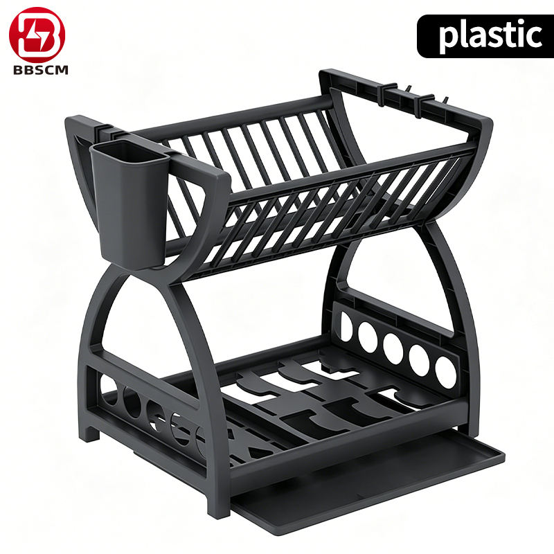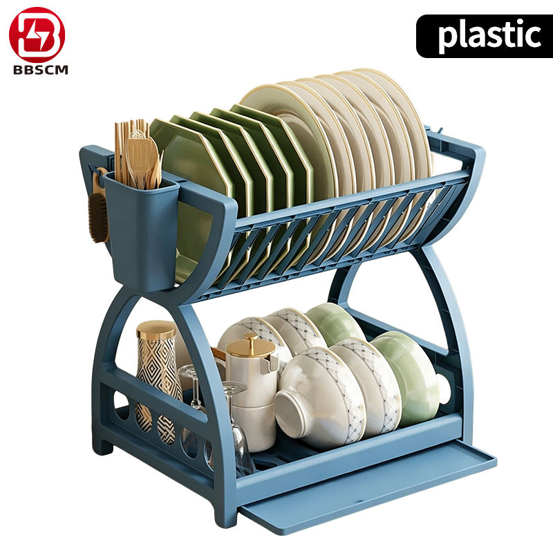 Dish Drainer Dish Drying Rack Kitchen Storage Double Layer Shelf Knife Fork Container Holder Cutting Board Stand Standing Type