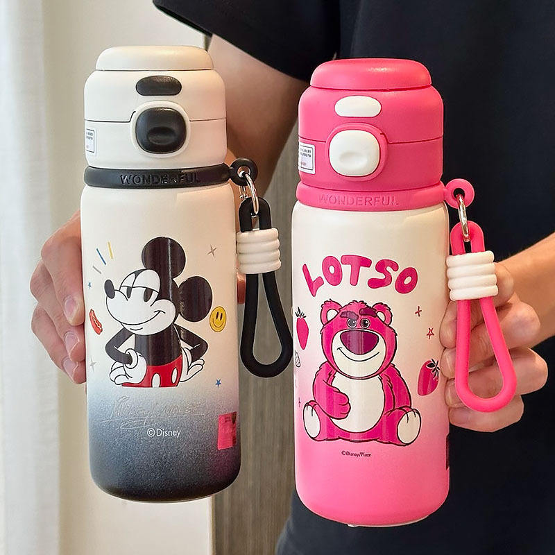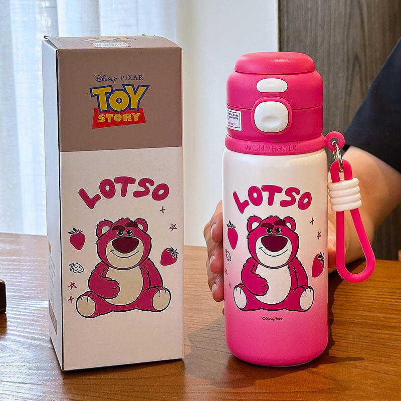 Disney Lotso Children's Water Bottle 500Ml Flip Top Cap Portable Straw Cup For Kids School Use