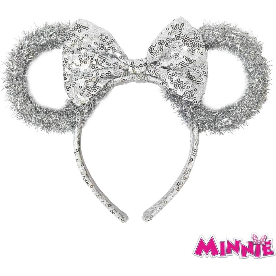 Disney Minnie Mouse Tinsel Ear Headband with Sequin Bow Sparkly Costume Hair Accessory for Kids and Adults LUV HER Design