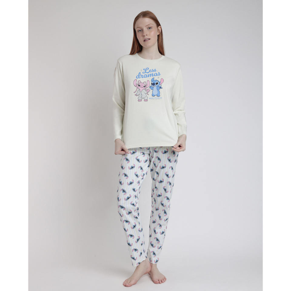 Disney Women's Stitch Sleep Dress Breathable Spandex Manga Larga Pyjamas Elastic Waist Button Closure Animal Print Home Wear