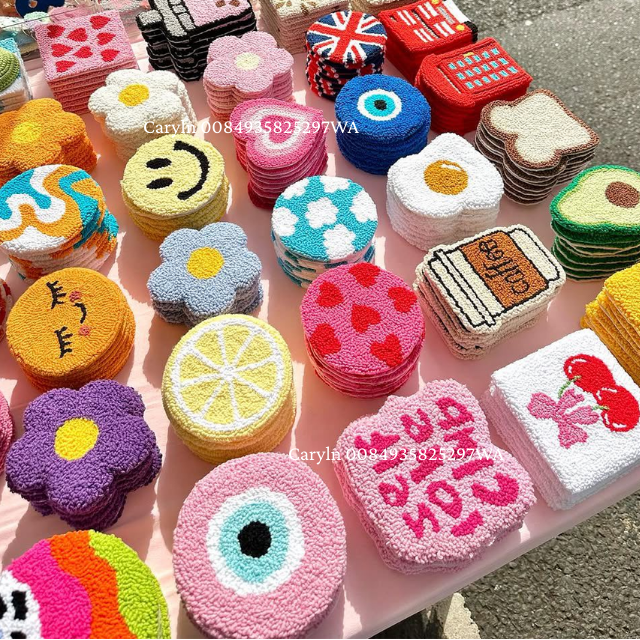 Display Boho Abstract Punch Needle Coaster Minimal Fall Decor Winter Coasters Handmade Mug Rugs - Caryln 0084935825297