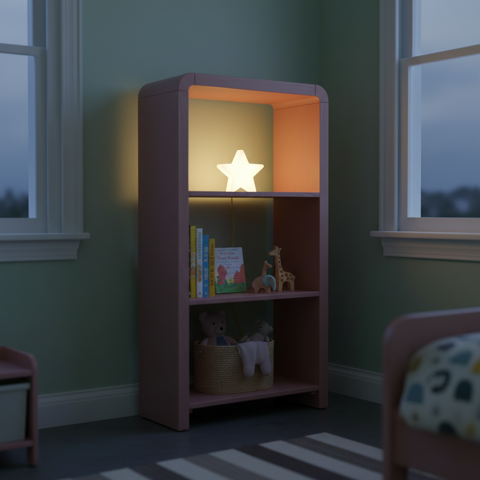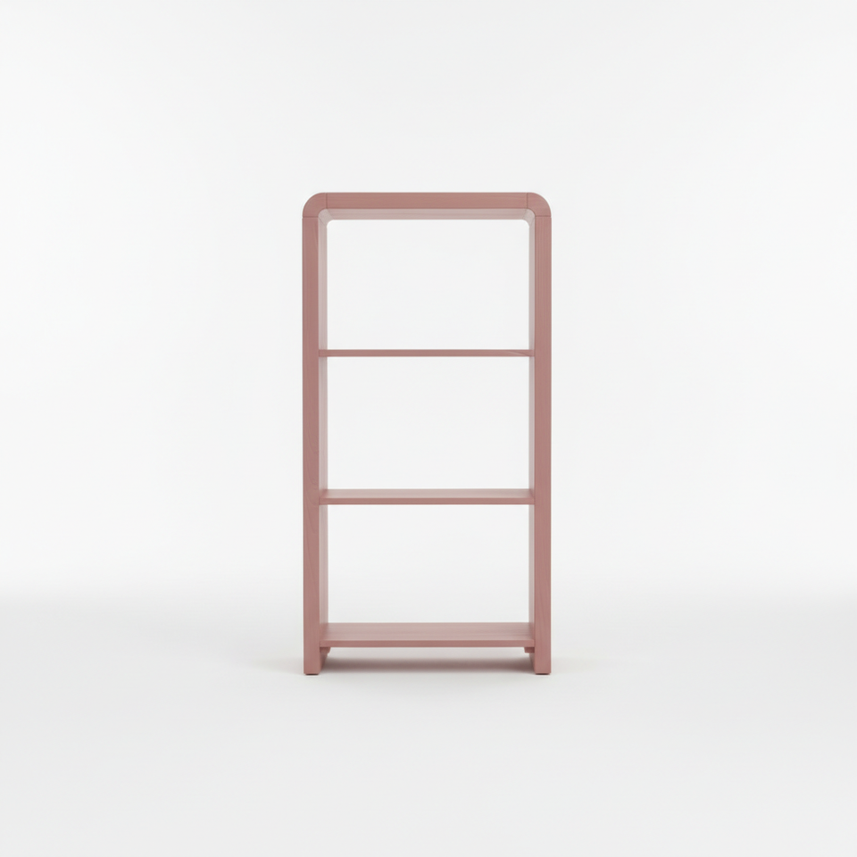 Pink Rose Eco-Friendly Modern 3-Shelf Backless Rubber Wood MDF Oak Veneer Living Room Display Bookcase Storage Shelving Unit