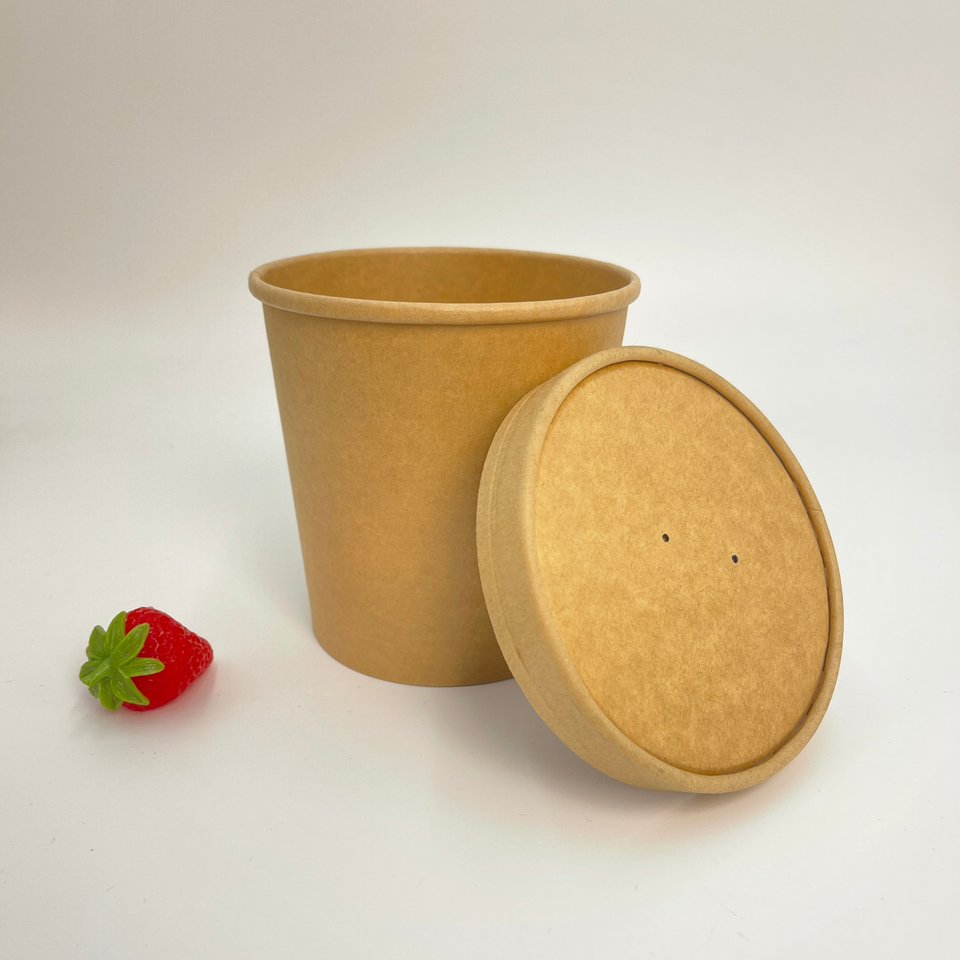 Disposable 32oz Hot Kraft Paper Soup Cup Container With Paper Lids Custom Printed Logo Paper Soup Bowl
