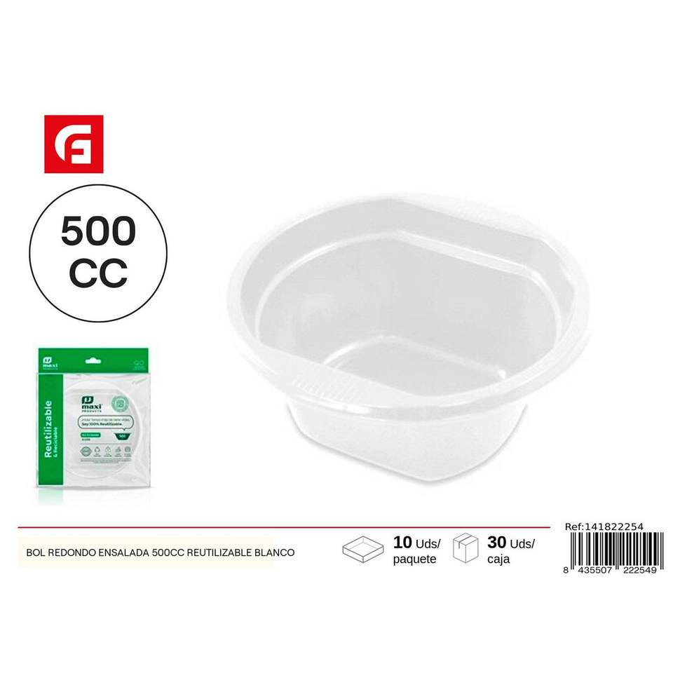 Disposable 500ml White Round Salad Bowl Reusable Salad Tools
