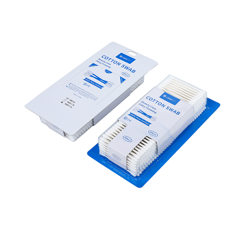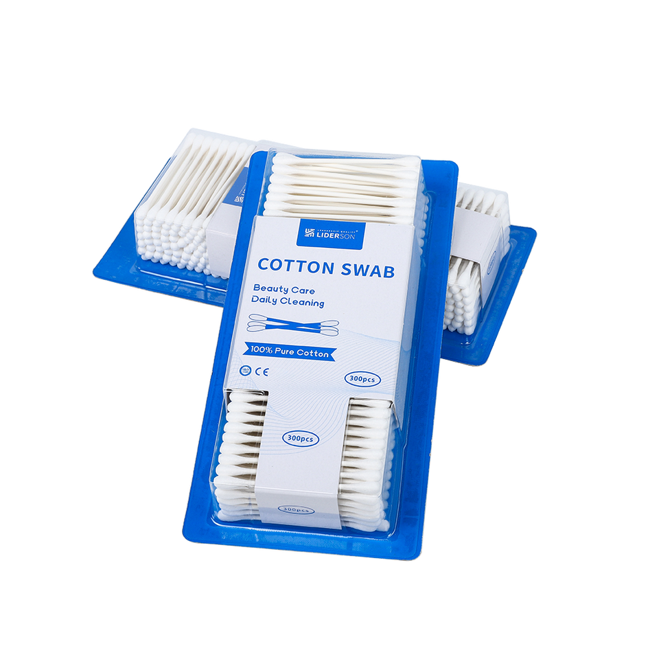 Disposable Double Head Eco Friendly 300pcs/Box Cotton Buds paper stick Cotton swab with Blister Card Packed