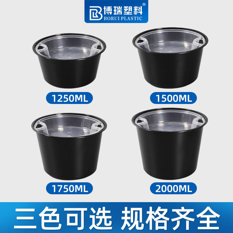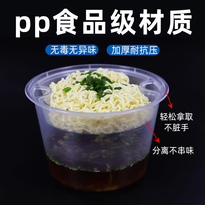 Disposable Double Layer Round Takeout Box 35oz With Lid Microwave Safe For Soup Noodle Separation