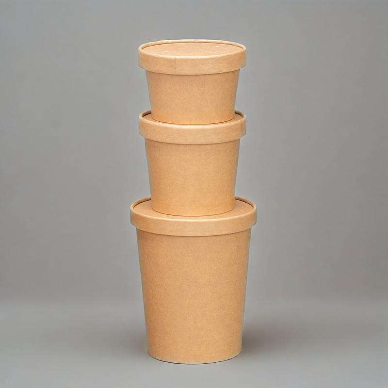Disposable Eco-Friendly Kraft Paper Soup Bucket Porridge Cup Lid Customizable Logo Printed Takeaway Bowl for Soup Porridge