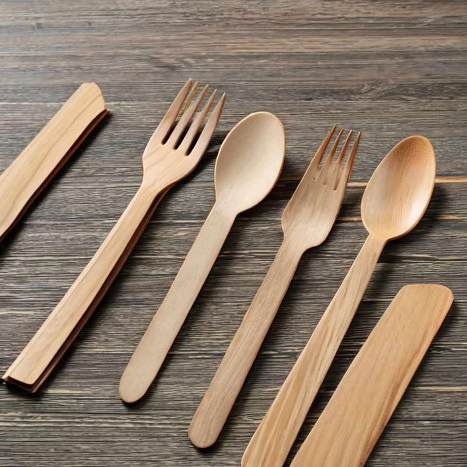 Disposable Edible Wooden Takeaway Cutlery Birchwood Compostable Disposable Biodegradable Wooden Spoon and Fork and Knife Set