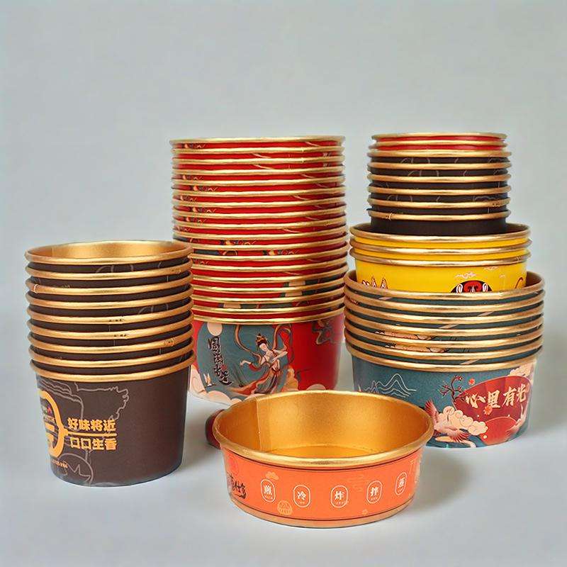 Disposable Gold Foil Kraft Paper Bowl with Lid Fast Food Take-out Round Box Commercial Salad Bowl Food Container