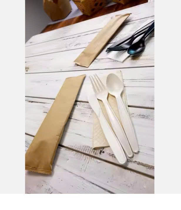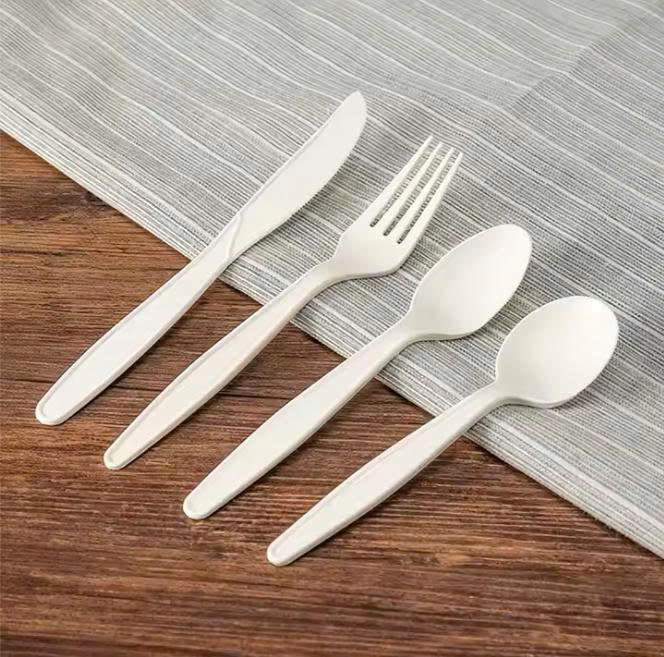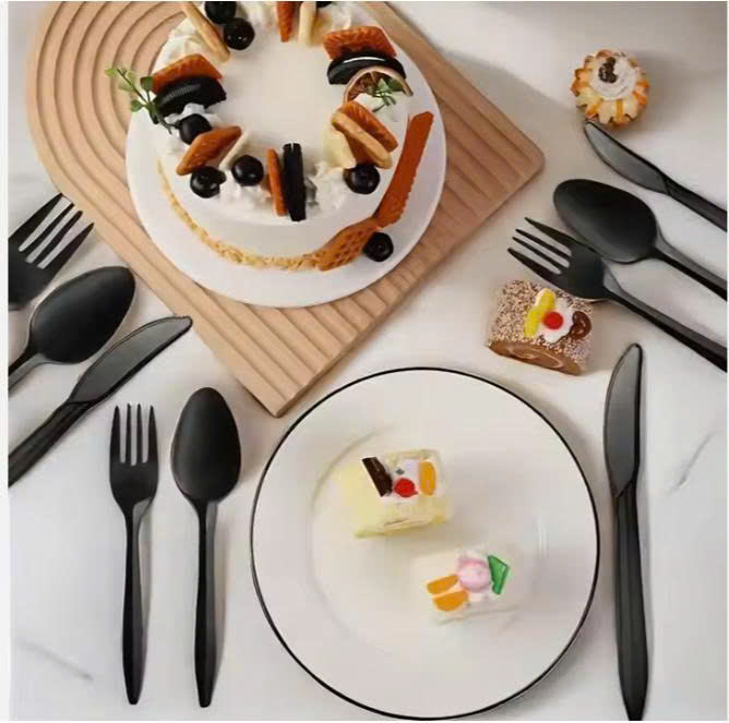Disposable Hard Plastic Cutlery Set Compostable Spoons Heavyweight black white