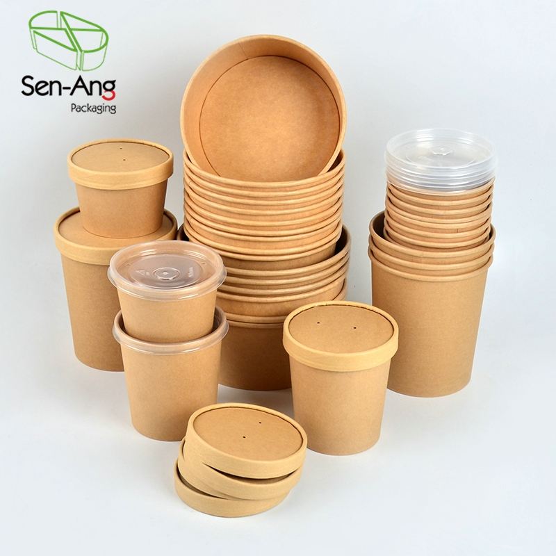 Disposable Kraft Paper Soup Cup Bowl with Paper Lid Take Away Lunch Packing Takeout Food Packaging Bucket