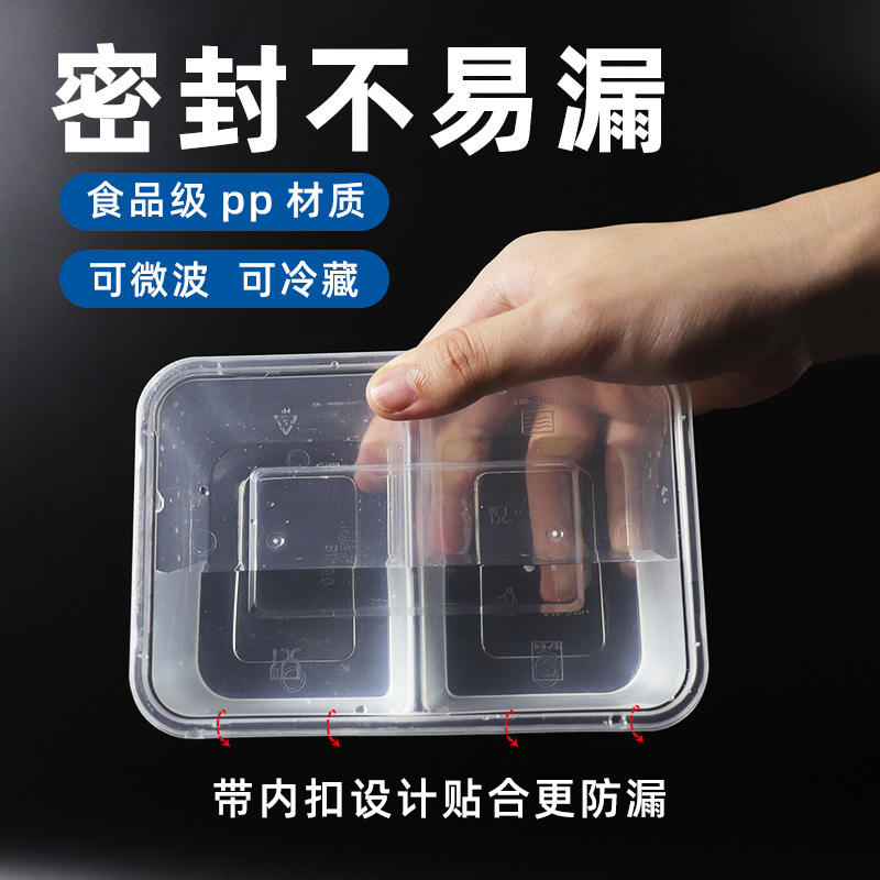Disposable Lunch Box Double Compartment Rectangular Black With Lid Microwave Safe Takeout Packaging