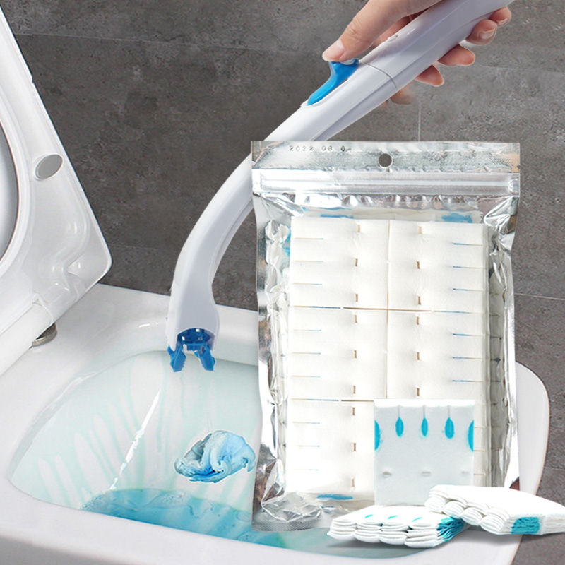 Disposable Multifunctional Toilet Cleaning Brush Sponge Replacement Head Waterproof Portable Plastic Handle for Bathroom Use