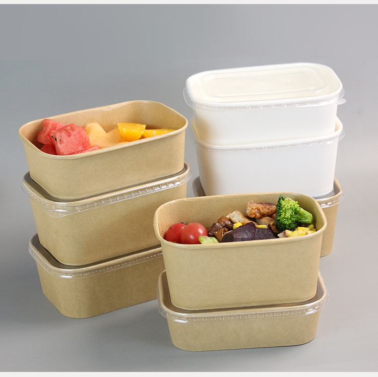 Disposable Paper Bowl Food Container Fast Food Takeaway Bowls Packaging With Lids Disposable Rectangle Paper Bowl