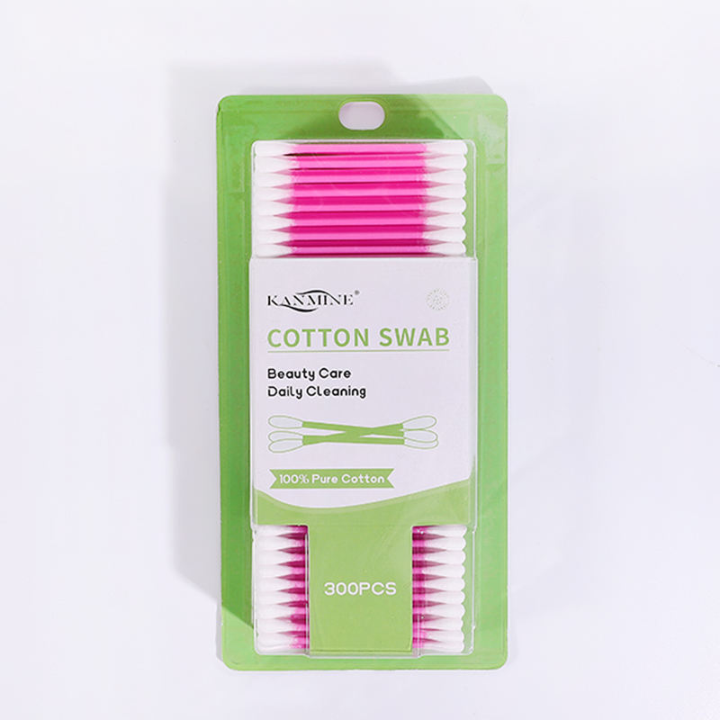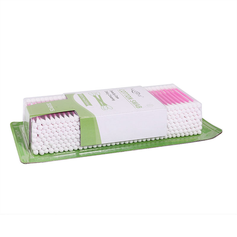 300PCS Disposable Pink Stick Cotton Swabs-Eco-Friendly Ear Cleaning Cotton bud Q Tips with Blister Packing