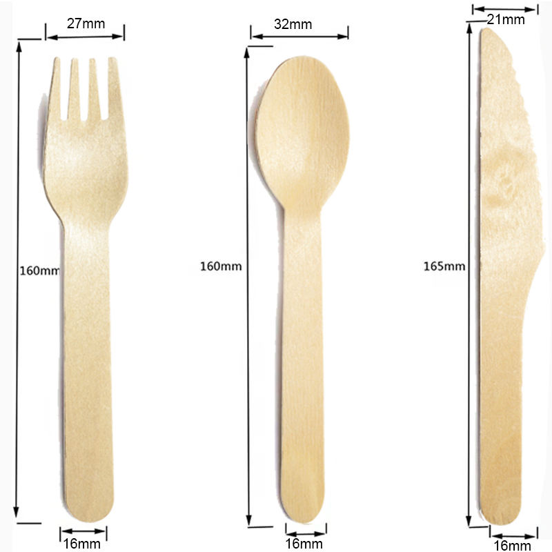 Disposable Wooden Cutlery Utensils Set - (Pack of 275) 110 Forks 55 Knives 110 Spoons, 6.2-inch Eco-Friendly Compostable