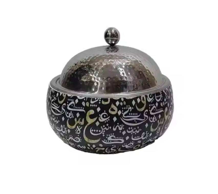 Distinctive Islamic Design Wooden Hot Pot with Hammered Steel Lid Customizable Size for Food Storage and Beautiful Serving Pot