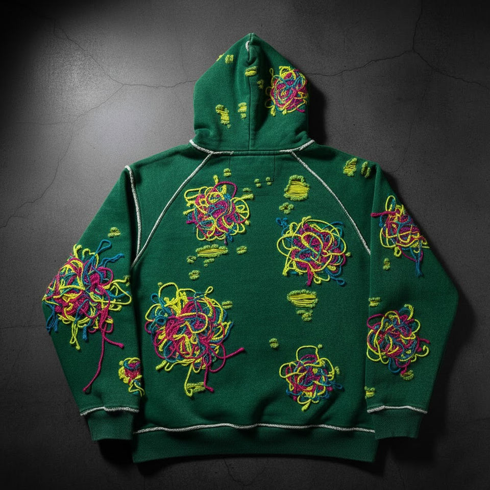 Distress Hoodie Custom Manufacturer Men Vintage Embroidered Hoodie Heavyweight Distressed Patch Stone Acid Wash Men's Hoodies