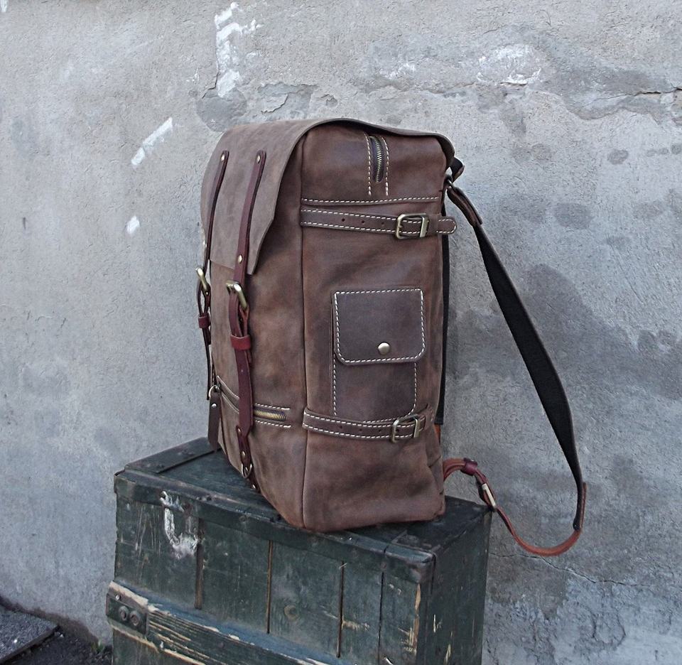 Distress Leather Travel Backpack Bag Zipper Pocket and Pocket With Retaining Strap, for Men Backpack Fashion Large Capacity Bags