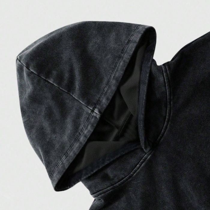 Distressed Acid Washed Hoodie Custom Letter Print Pullover Oversized Fit 100% Cotton for Men Vintage Emo Style Streetwear