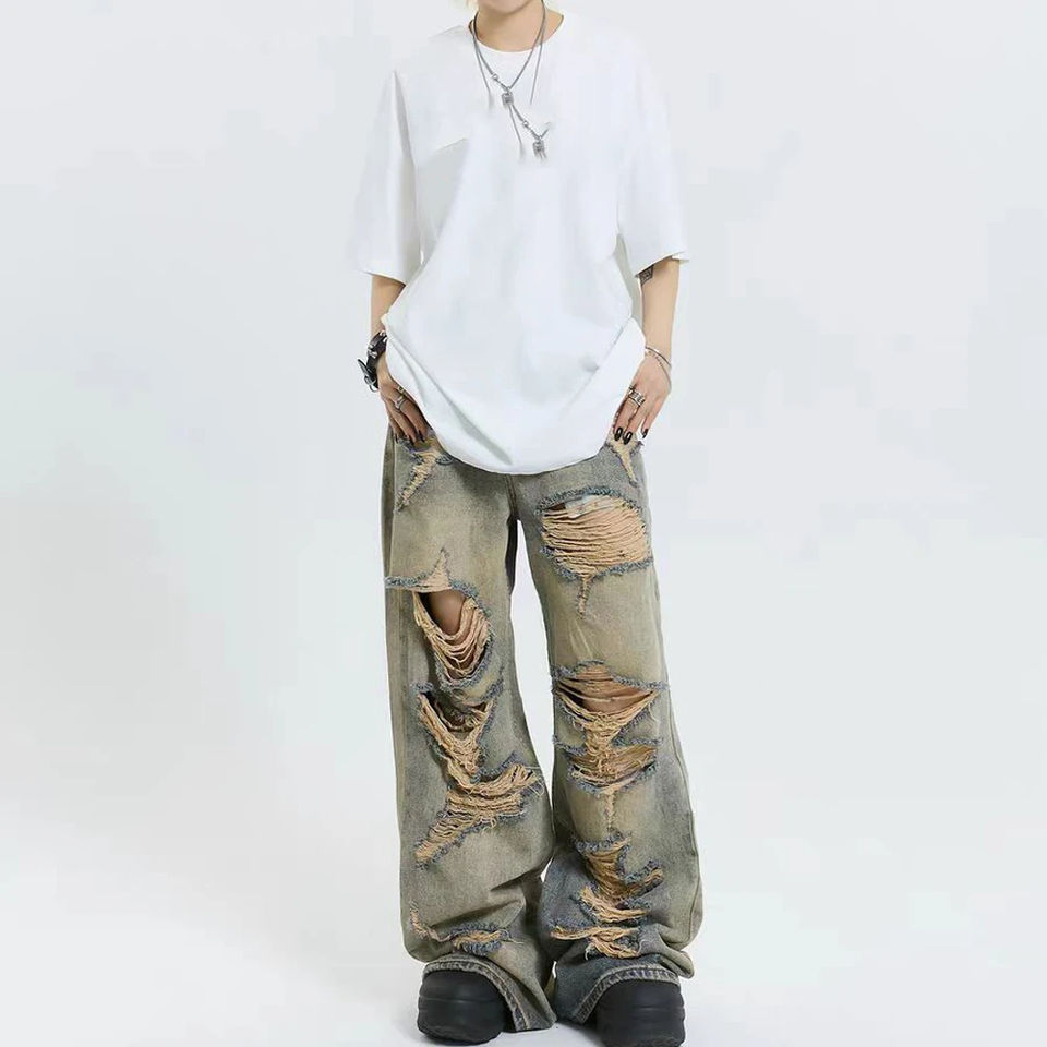 Distressed Baggy Jeans Custom High Quality 100% Cotton Mens Digital Printed Denim Jeans Loose Pants Washed Jeans