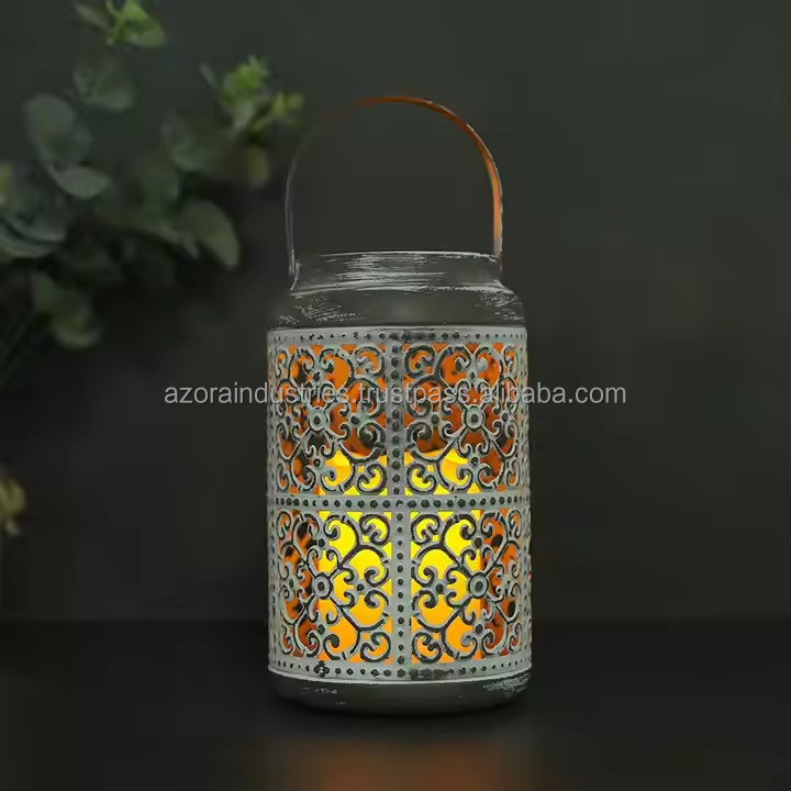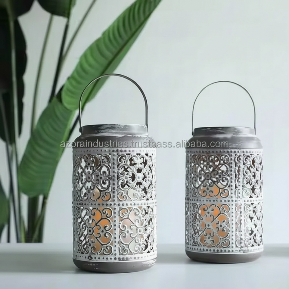 Distressed Color Metal Handmade Lantern Candle Holder Stand for Christmas Easter Home Event Decorations Pillar Shape Garden