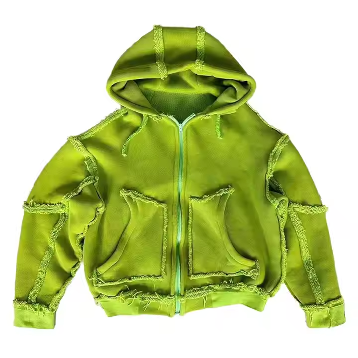 Distressed Cropped Hoodie Men Vintage Wash Heavy Weight Zip up Hoodies