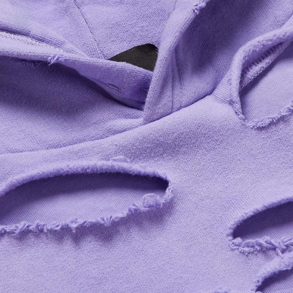 Distressed Purple Hoodie Men Oversized Streetwear Vintage Ripped Pullover Fleece Hooded Sweatshirt Fashion Casual Trendy Top