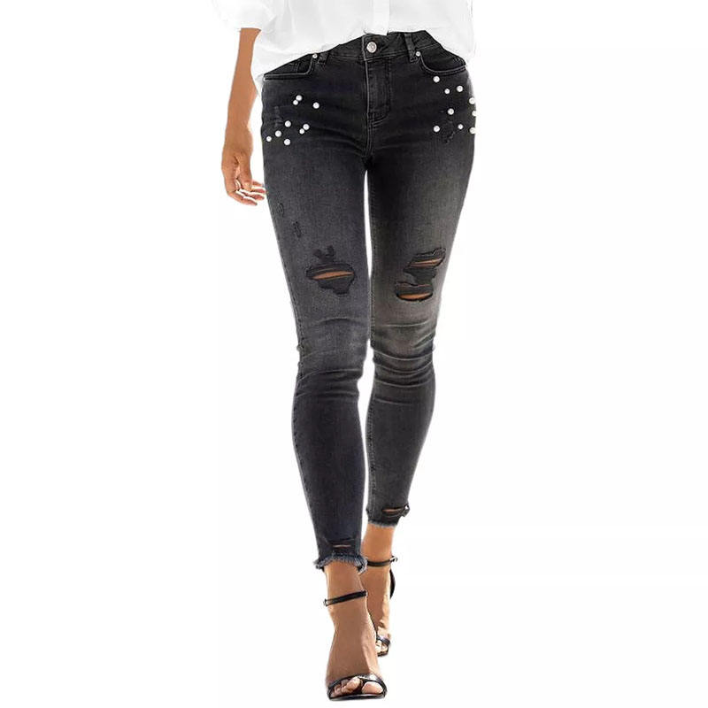 Product name:Women Pearl Denim Pants