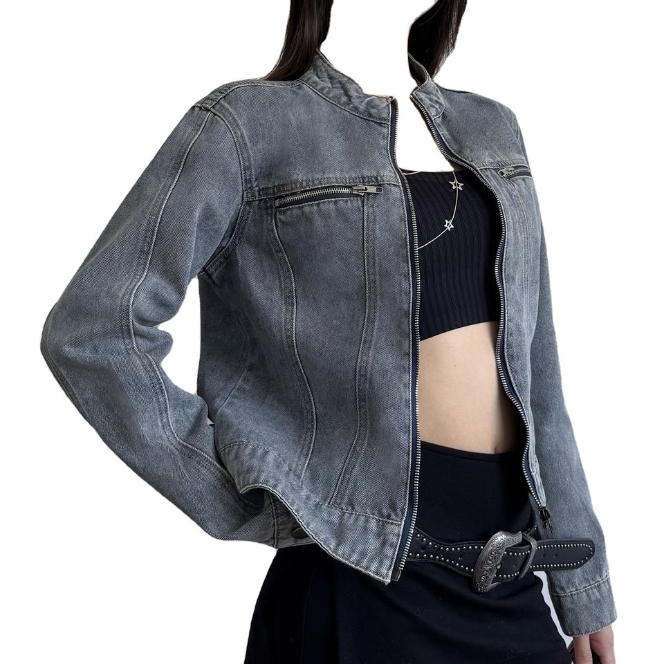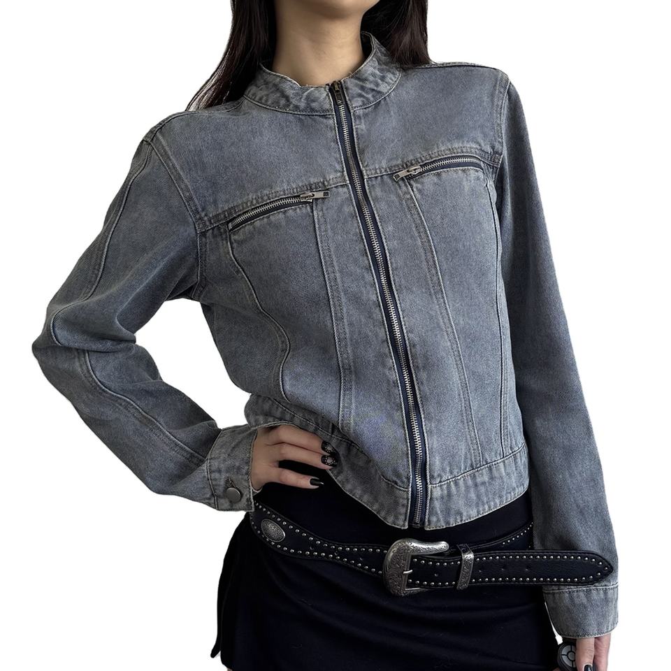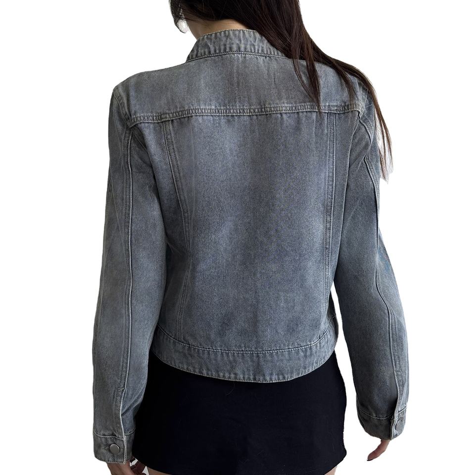Distressed Washed Denim Jacket Stand Collar Zip Long Sleeve Windproof Modern Street Casual Autumn Outerwear 2026