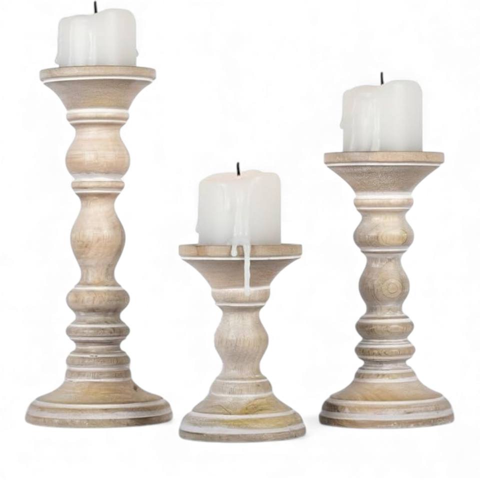 Distressed Wooden Candle Holder With Vintage White Wash Finish For Classic Interior Styling