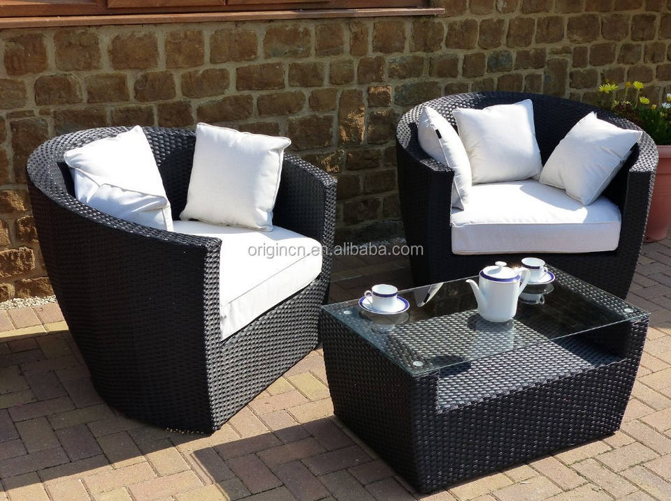 Divan Design Greece Outdoor Garden Furniture Balcony Bar Set Rattan Single Seat Sofas and Glass Top Tables