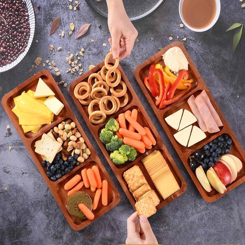 Product Name:Acacia Wood Serving Platter With 3 Section l Set of 3