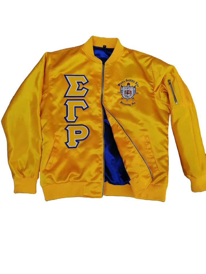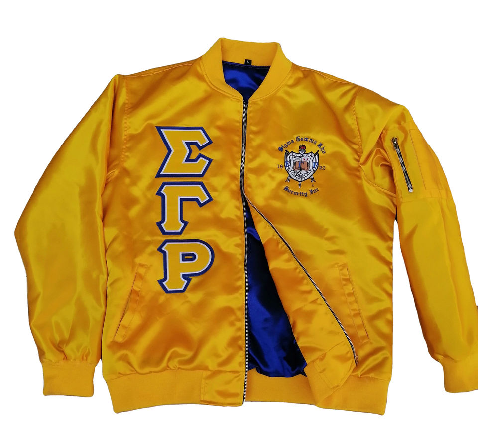 Divine Nine Satin Bomber Jacket Sigma Gamma Rho Quilt Sorority Embroidered Greek Letters Soft Polyester Lining Finished