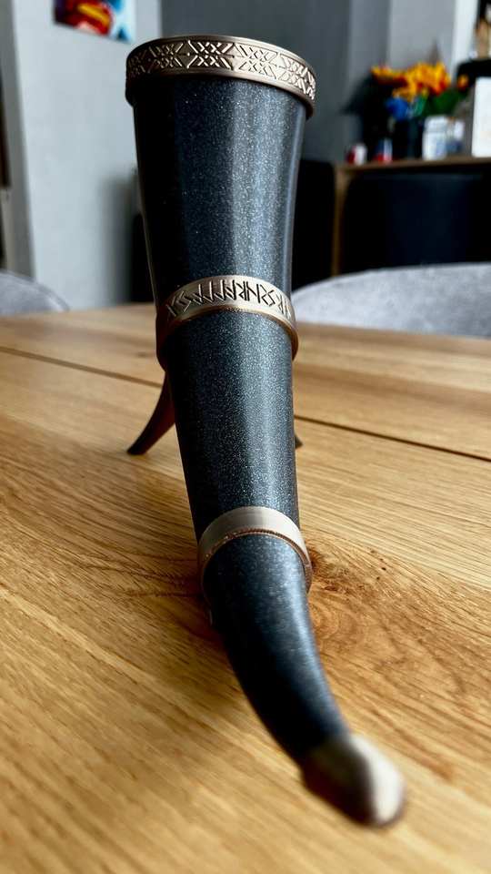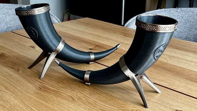 Divit Genuine Viking Drinking Horn Mug | Authentic Medieval Beer Horn Tankard | 24oz Capacity Horn Cup/Stein. (Jarl, Polished)