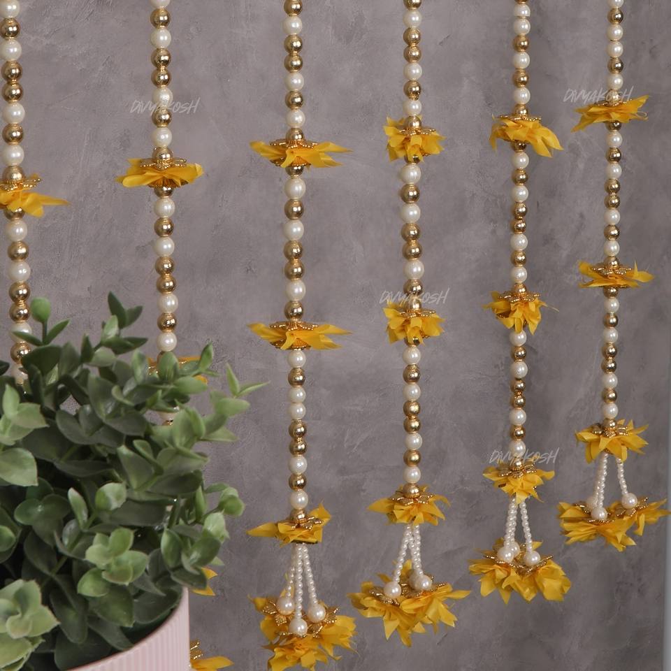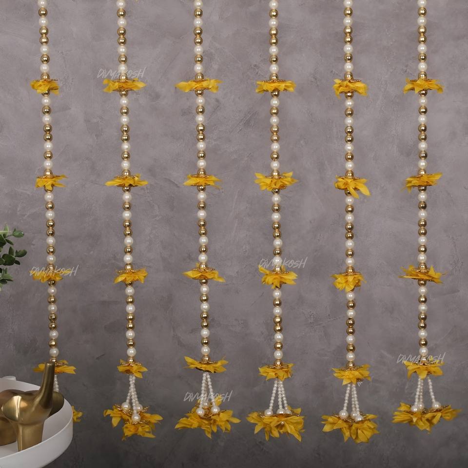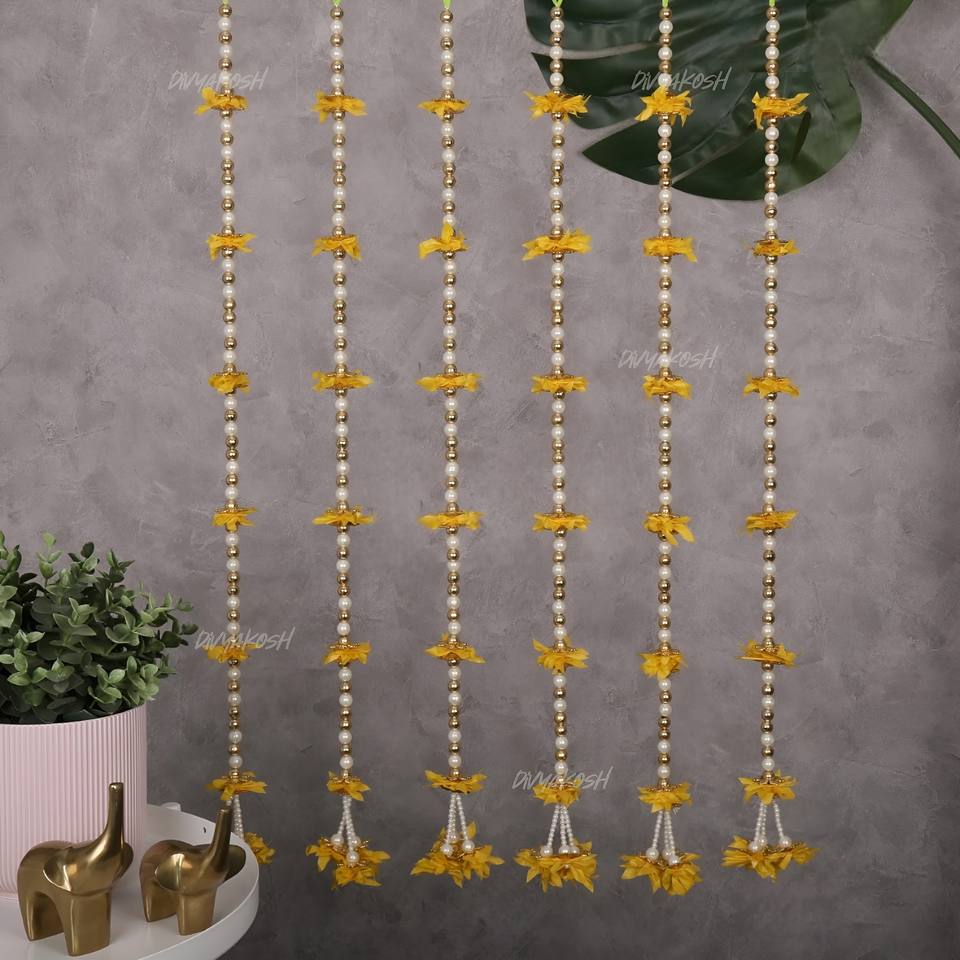 Divyakosh Latkan 2 FT Side Hangings Yellow Flower Strings Wall Decorative Backdrop for Home for Diwali (Pack 6)