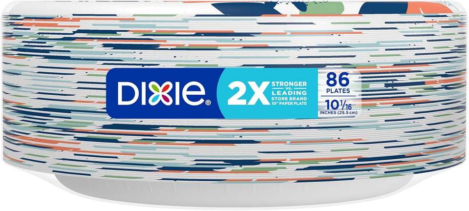 Dixie Large Paper Plates, 10 Inch, 86 Count, 2X Stronger*, Microwave-Safe, Soak-Proof, Cut Resistant, Disposable Plates
