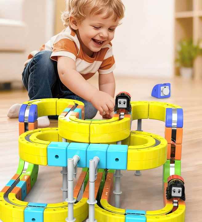 Diy Assembly Magic Track Car Building Block Multiple Shapes Kids Stem Educational Electronic Rail Train Plastic Cube Toys Sets